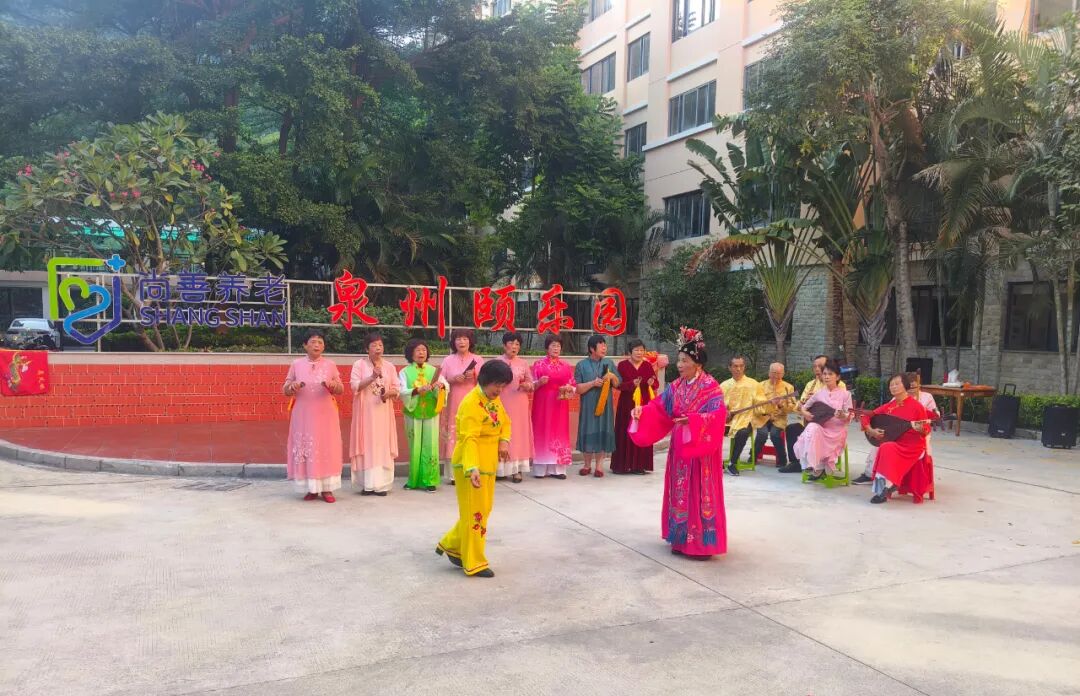 台上表演精彩纷呈,台下笑脸如花。我们看到有的爷爷跟着南音轻轻哼唱,有的奶奶为舞龙表演热烈鼓掌,脸上洋溢着幸福、开心的笑容。这一刻,温暖的阳光洒满庭院,艺术的纽带连接起两代人的心,整个颐乐园都弥漫着尊老、敬老的浓厚温情。
