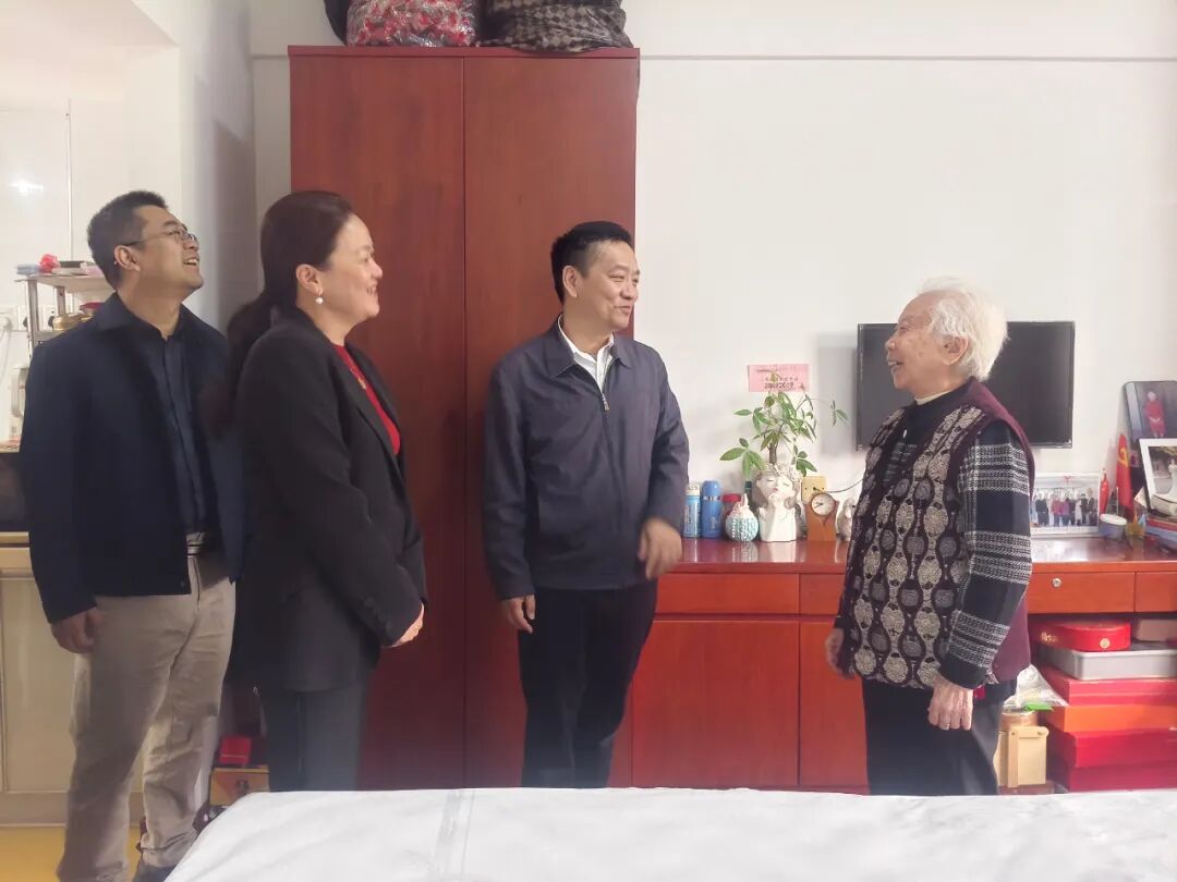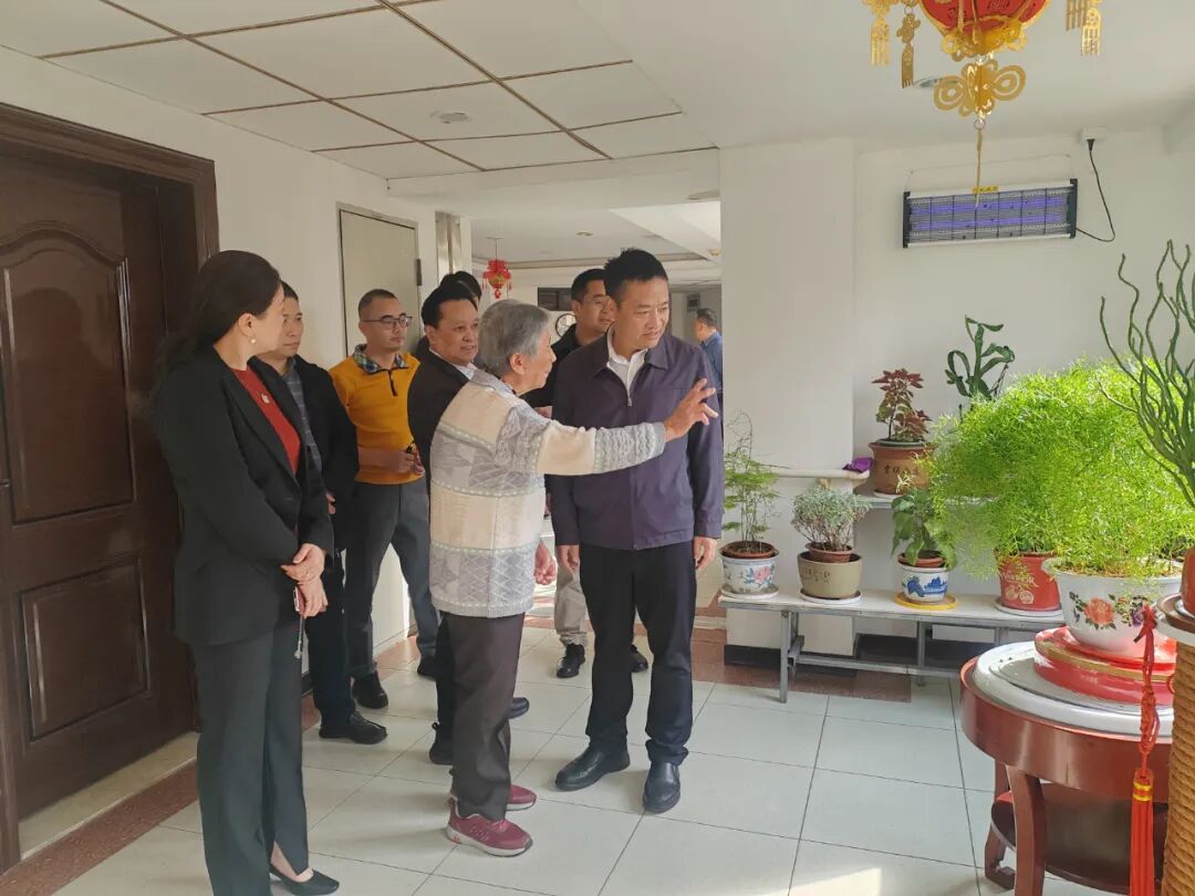 在参观过程中,颐乐园长者张淑珠奶奶亲手打理的“微花园”吸引了众人的目光,精巧别致、生机盎然,赢得一致好评。随后,考察团走访了百岁长者王惠玑奶奶的居室。宋文副区长与王奶奶亲切交谈,对其耳聪目明、思维清晰的健康状态表示赞叹,并特意与王奶奶合影留念。